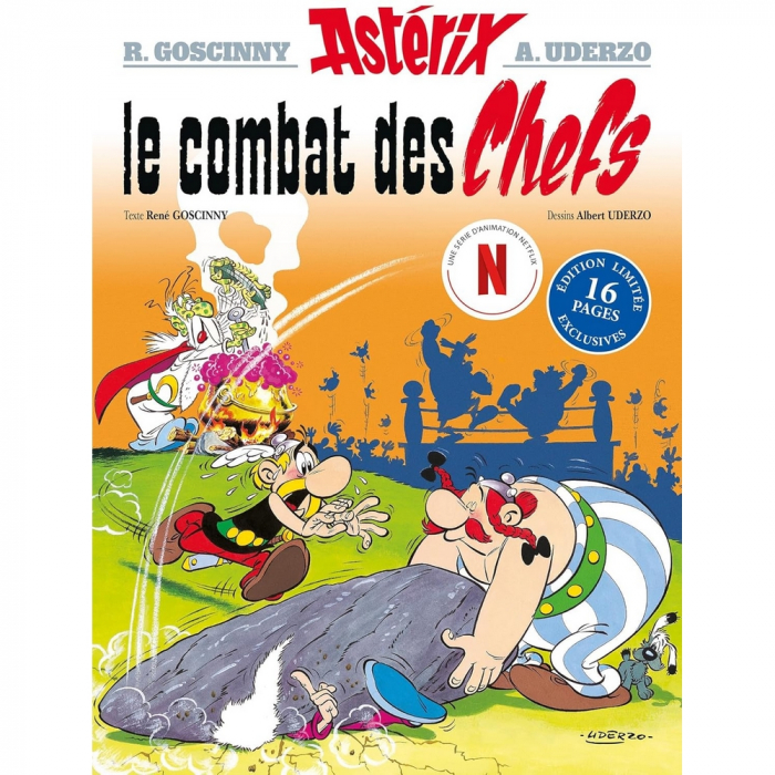 Find Le Combat des chefs in a new special limited edition, including a 16-page dossier on the behind-the-scenes of the creation of the album. The dossier has been updated with 16 new pages that reveal the behind-the-scenes of the animated series Asterix and Obelix, Le Combat des chefs available on April 30, 2025 on Netflix. 64 pages. French.