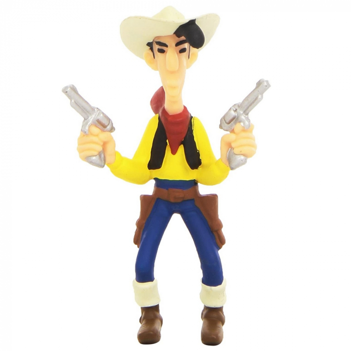 Collectible Plastoy figure based on the classic cartoons and comics about the cowboy who shoots faster than his own shadow, Lucky Luke with two pistols. Height: 7,5cm.