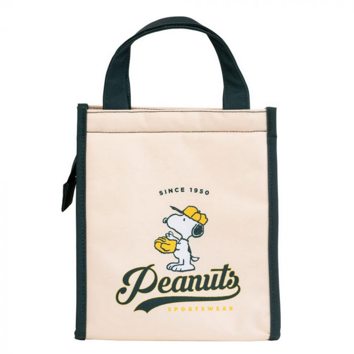 Isotherm Lunch Bag Erik, Peanuts Snoopy. The interior is aluminum while the exterior is polyester. This will keep food cold or hot. Mesh pocket on the side to put your water bottle. It has a zipper and a fabric handle for easy carrying. Dimensions: 20x13x23cm.