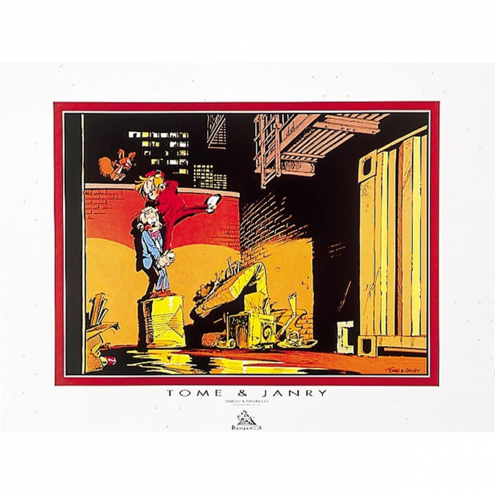 This poster of Janry, published by Démons & Merveilles, is extracted from the series Spirou and Fantasio. It is printed in offset quality and has a format of 80x60cm.