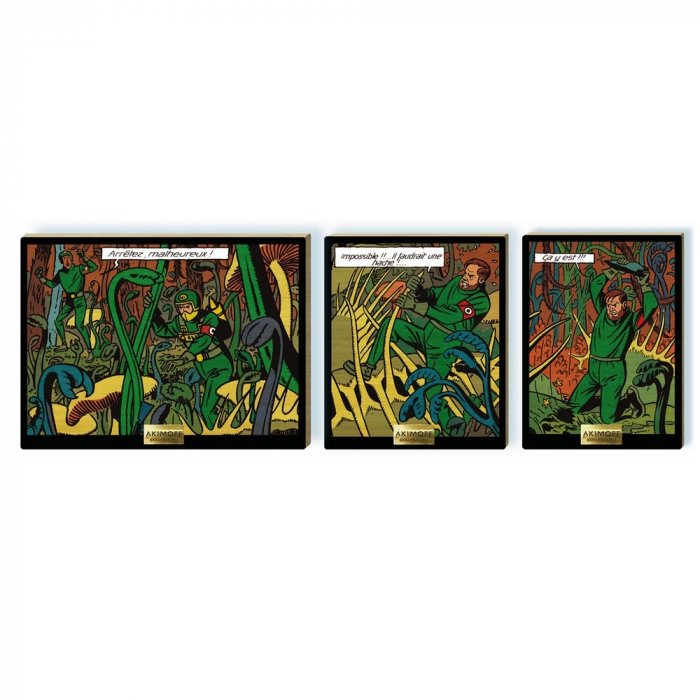 Collectible triptych scene from the manufacturer Akimoff: Blake and Mortimer from the album Atlantis Mystery: the Carnivorous Plants. Limited edition of 59 copies, hand-numbered from 1 to 59.
