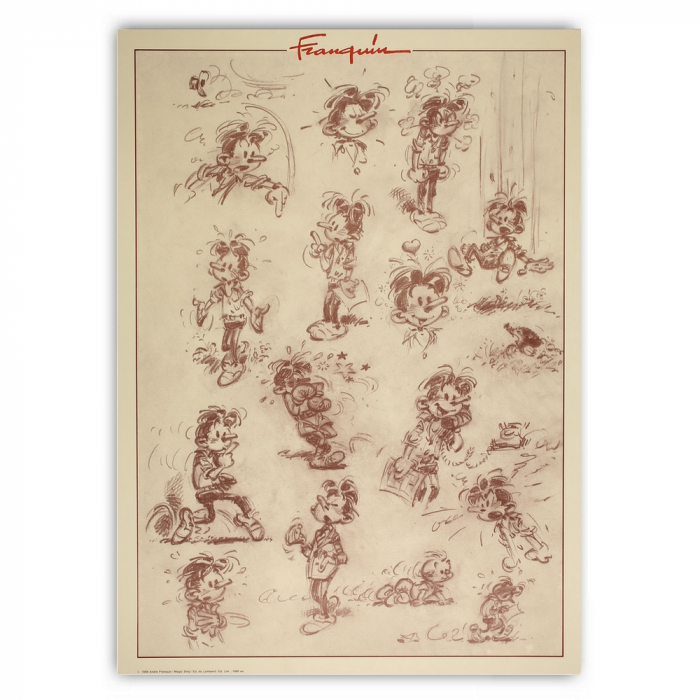 Collectible Poster offset Editions Magic Strip Franquin Modeste and Pompon, Pencil sketch. 1988. Dimensions: 50x70cm.
