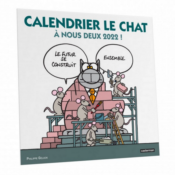 Calendario de pared Casterman edición 2022 El Gato, de Philippe Geluck. Calendario grande, dimensiones: 29x29cm. Francés.
