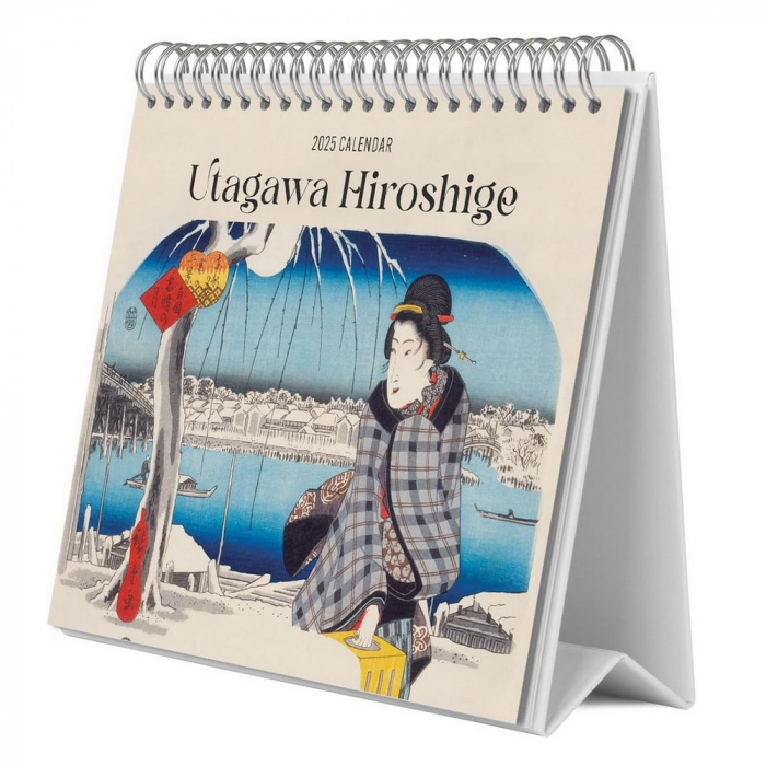 Calendario de sobremesa Erik, Utagawa Hiroshige 2025. Encuadernación con grapa, incluye 12 imágenes en su interior. Papel de 300g y laminado brillo en la cubierta e interior de 150g. Dimensiones: 20x17cm. 6 idiomas: inglés, español, francés, alemán, italiano y portugués.