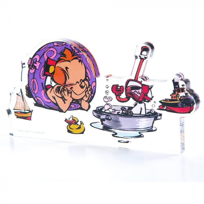Figurita de colección en acrílico Art To Print, diseñado y fabricado en Francia. El Pequeño Spirou en la playa. Altura: 8cm.