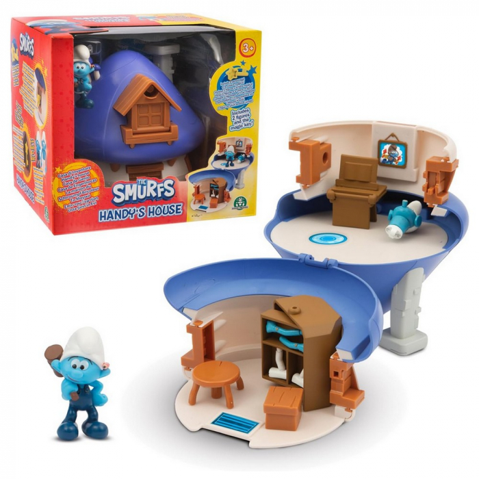 Descubre un cofre exclusivo Los Pitufos de Giochi Preziosi con Casa Mágica, llave, 1 figura del Pitufo Manitas, 1 figura del Pitufo Robot y accesorios.