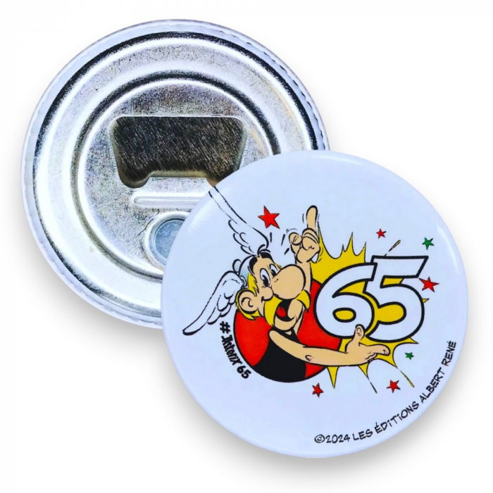 Imán decorativo abrebotellas Asterix y Obelix: 65 años. 55mm.