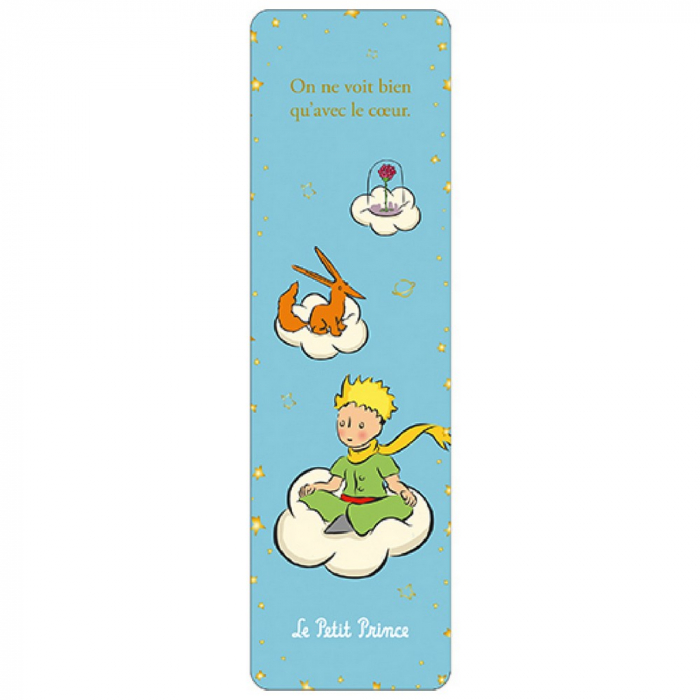 Marcapáginas de papel Kiub El Principito, Zorro y Rosa sobre las nubes. 54x172mm.