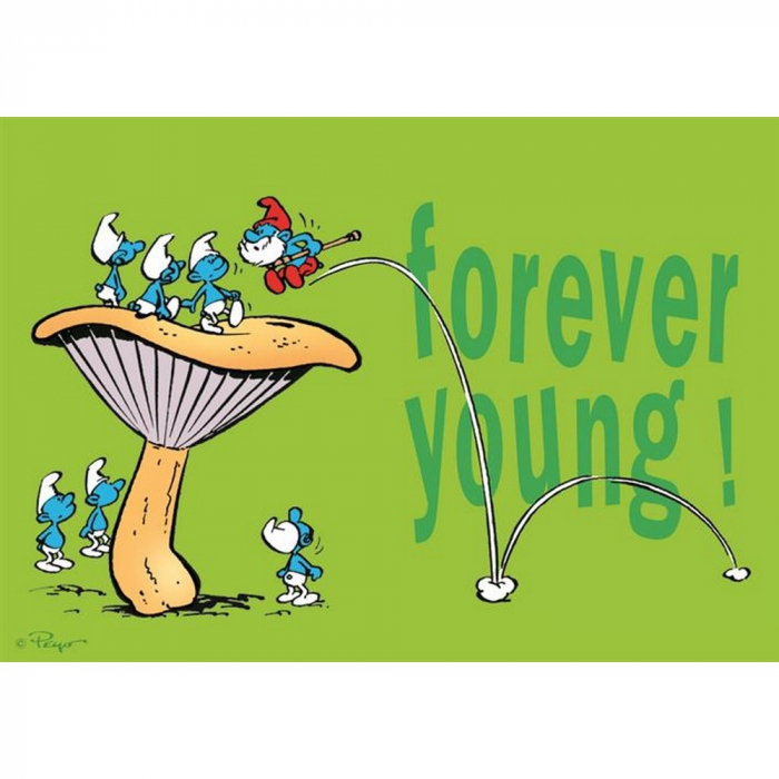 Postal de colección Los Pitufos, Forever Young ! 15x10cm.