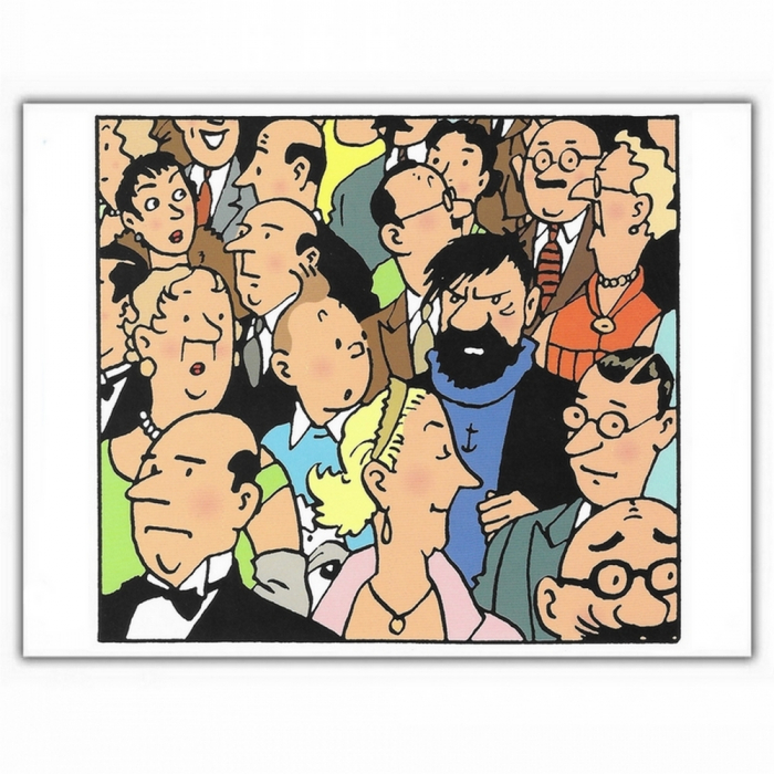 Postal doble Moulinsart Tintín y Haddock en la multitud. Sobre incluido. Dimensiones: 17,5x12,5cm.
