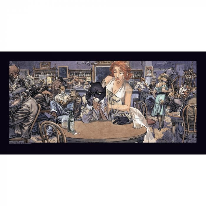 Este cartel offset del cómic Blacksad de Juanjo Guarnido está impreso en papel de alta calidad Condat mat 250g. 100x50cm. John's Blues.
