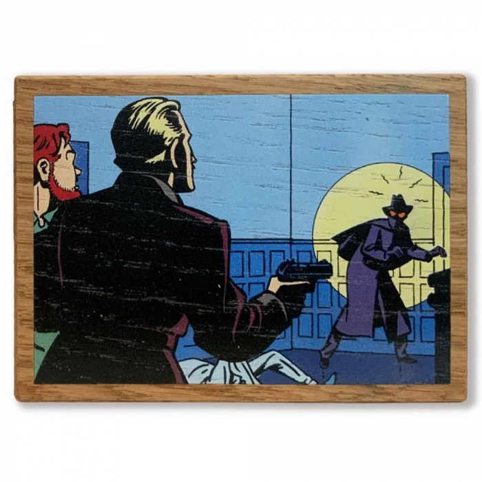 Las ilustraciones seleccionadas del álbum La Marca Amarilla están meticulosamente impresas en ambas caras del talismán de roble macizo. Esta impresión de alta calidad reproduce fielmente los colores originales mientras revela la veta de la madera. Este producto está hecho a mano en Francia.