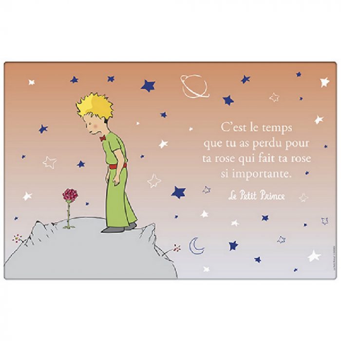 Salvamantel de plástico Kiub El Principito observando la Rosa. Dimensiones: 43x28cm.
