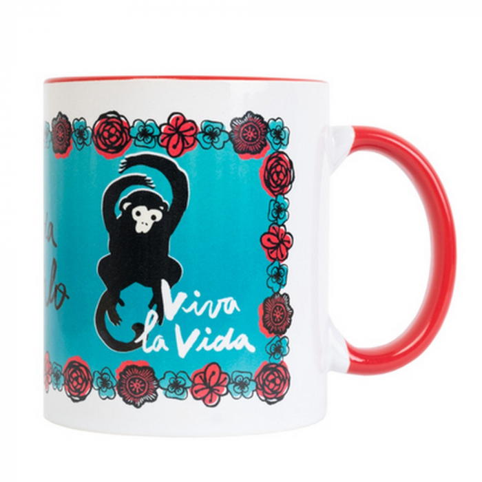 Taza de porcelana de la marca Erik, Frida Kahlo: Viva la Vida. Ideal para un regalo, compatible con microondas y lavavajillas. 300ml.