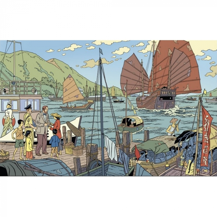 Carte postale de Blake et Mortimer: La vallée des immortels, le port.