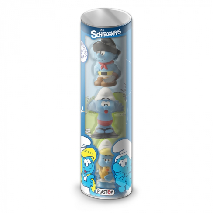 Série tube de 3 figurines Plastoy, tiré des bandes dessinées Les Schtroumpfs. Les enfants commencent à explorer le monde qui les entoure : ils touchent à tout et leur motricité fine se développe. Ces premières figurines sont adaptées aux mains des tout-petits: leur douceur et leur souplesse les rendent facilement préhensibles. Elles sont idéales pour stimuler l'éveil et l'imagination.