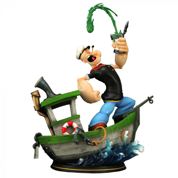 Figurine de collection en résine et PU Cartoon Kingdom, Popeye dans son bateau vert épinard. Edition limitée et numérotée à 100 exemplaires avec certificat d'authenticité. Hauteur: 44cm.