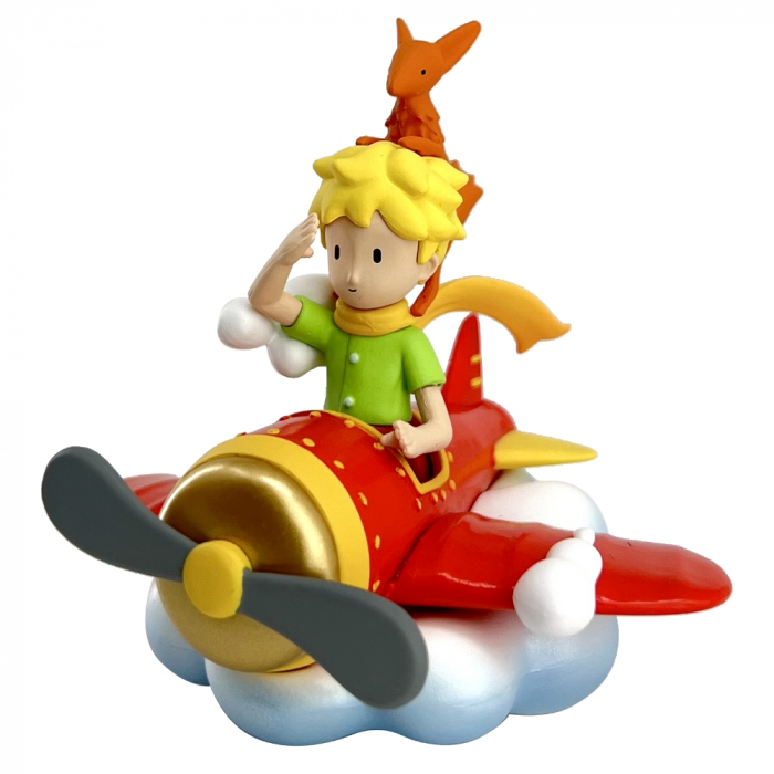 Cette figurine PVC du Petit Prince et le renard en avion est inspirée de l'oeuvre d'Antoine de Saint-Exupery et a été créée par Plastoy. Hauteur: 7,6cm.
