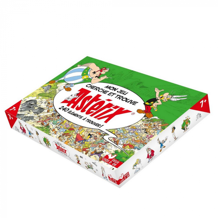 Un jeu de cherche & trouve avec un plateau en 4 morceaux recto-verso à multiples combinaisons à assembler sur l'univers d'Astérix. 120 cartes recto-verso, 240 éléments à chercher et trouver. 1 leaflet qui propose plusieurs règles du jeu: en solo ou en famille. A partir de 7 ans.