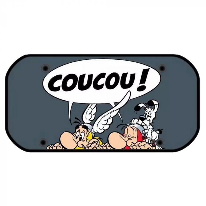 Pare-soleil arrière de voiture, semi-rigide avec quatres ventouses. Astérix et Obélix Coucou !! Dimensions: 100x50cm.