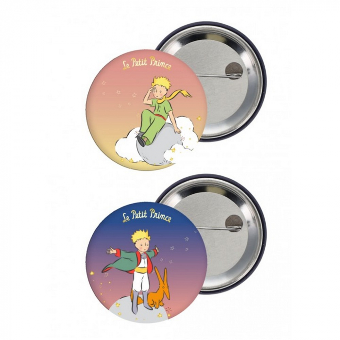 Set de 2 badges en métal de collection Kiub, Le Petit Prince. Diamètre: 4,5cm.