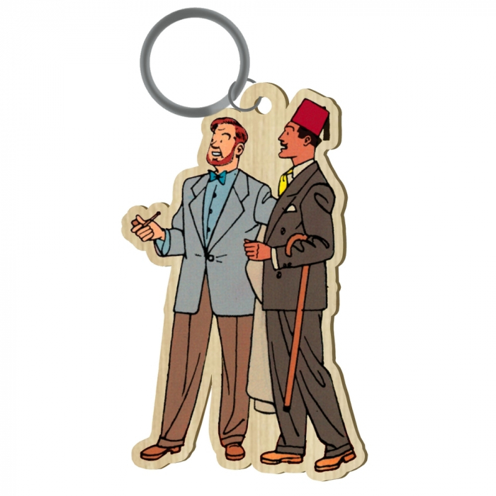 Porte-clés figurine de collection Blake et Mortimer du fabricant Akimoff: Mortimer et Ahmed Rassim Bey. Réalisée entièrement en bois (peuplier). Edition limitée et numérotée à 99 exemplaires. Dimensions: 8,9x5,5cm.