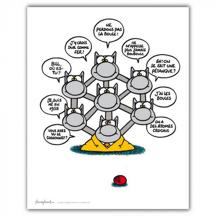 Poster affiche offset Le Chat de Philippe Geluck: Atomium. Dimensions: 40x50cm.