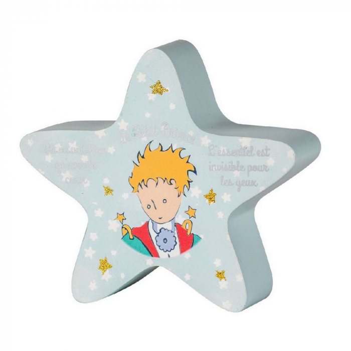 Cette tirelire en bois du Petit Prince est inspirée de l'oeuvre d'Antoine de Saint-Exupery et a été créée par Enesco. Leur design rond, coloré et pop plaira à tous les fans de comics et autres amateurs de pop culture: le parfait cadeau à offrir ! Le Petit Prince: étoiles. Hauteur: 18cm.