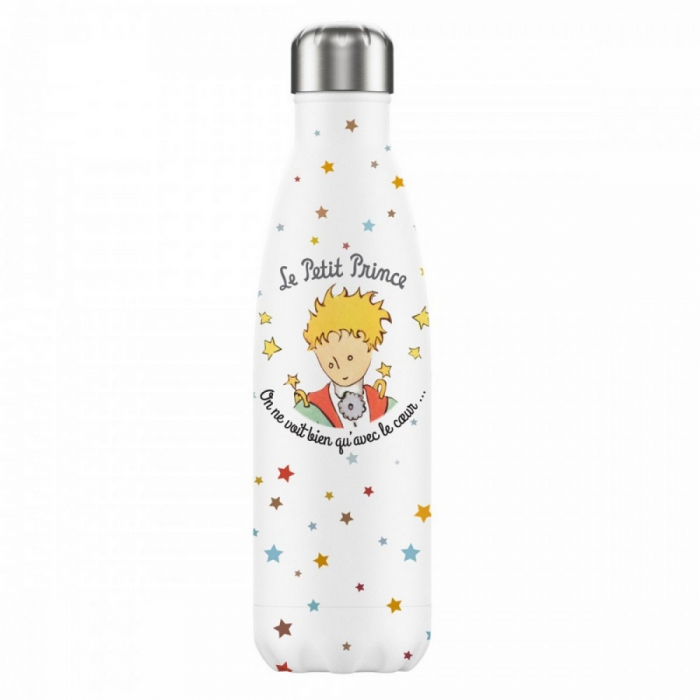 The Little Prince high-quality stainless steel thermal bottle from the brand Enesco. Solid screw cap and leak proof. The insulating effect of the material keeps the liquid warm or cold for approximately 12 hours. Dive into the world of the little prince and let yourself be enchanted! 500ml.