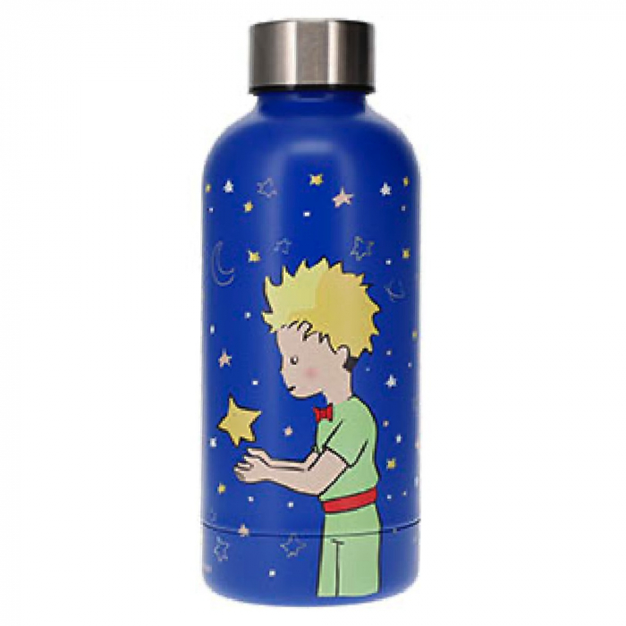 The Little Prince high-quality stainless steel thermal bottle from the brand Kiub. The Little Prince with the stars. Solid screw cap and leak proof. The insulating effect of the material keeps the liquid warm or cold for approximately 12 hours. Dive into the world of the little prince and let yourself be enchanted! 400ml.