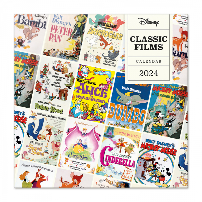 2023-2024 Wall calendar Erik Disney Classic Films. Staple binding, includes 16 images inside and 5mm hole to hang on the wall. Includes poster. 250g paper and 150g gloss lamination on the cover and inside. Dimensions: 30x30cm. 6 languages: English, Spanish, French, German, Italian and Portuguese. 16 months from September 2023 to December 2024.