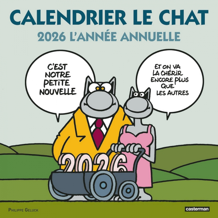2026 Casterman Wall Calendar Le Cat: L'Année Annuelle by Philippe Geluck. From January 2026 to January 2027, 24 pages. Wall Calendar. Dimensions: 29x29cm. French.