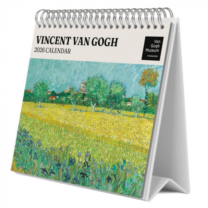 Desktop Calendar Erik, Van Gogh. Staple binding, includes 12 images inside. 300g paper and 150g gloss lamination on the cover and inside. Dimensions: 20x17cm. 6 languages: English, Spanish, French, German, Italian and Portuguese.
