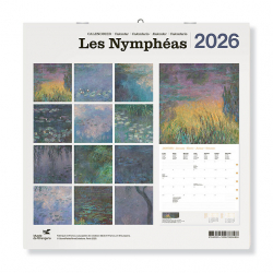 Claude Monet 2026 wall calendar. Made in France on quality coated paper. Dimensions: 30x30cm. 5 languages: English, Spanish, French, German and Italian. 12 months from January to December 2026.