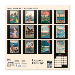 2026 Wall calendar Erik Utagawa Hiroshige. Staple binding, includes 12 images inside and 5mm hole to hang on the wall. Includes poster. 250g paper and 150g gloss lamination on the cover and inside. Dimensions: 30x30cm. 6 languages: English, Spanish, French, German, Italian and Portuguese. 12 months from January to December 2026.
