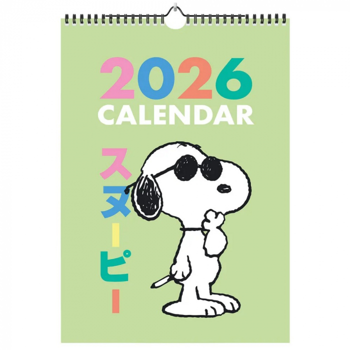 2026 Wall calendar Erik Peanuts, Snoopy. Staple binding, includes 12 images inside and 5mm hole to hang on the wall. 250g paper and 150g gloss lamination on the cover and inside. Dimensions: 29,7x42cm. English language. 12 months from January to December 2026.