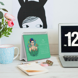 2026 Desktop Calendar Erik, Frida Kahlo. Staple binding, includes 12 images inside. 300g paper and 150g gloss lamination on the cover and inside. Dimensions: 20x17cm. 6 languages: English, Spanish, French, German, Italian and Portuguese.