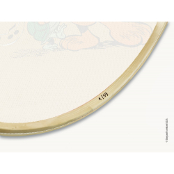 This illustrated canvas mounted in a bamboo hoop derived from the comic strip Boule et Bill by Jean Roba is printed on a Canvas with a quality cotton aspect 316g / m2. Each copy is framed in a bamboo hoop. Limited and numbered edition of 59 copies. Dimensions: 20cm in diameter. Dancing.