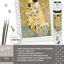 Ravensburger CreArt Painting Canvas by Numbers Set, Gustav Klimt: The Kiss. Everyone can be an artist with paint by numbers! Paint step by step using the numbered paint fields and create a true masterpiece. You'll be proud to show off your creation! 30x40cm.