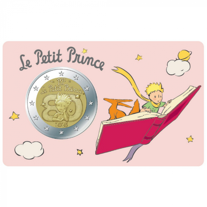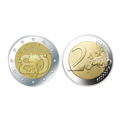 An exceptional edition in honor of the 80th anniversary of The Little Prince. 2 € coin made by the Monnaie de Paris. Limited edition of 75000 units. Legal tender in France, not for circulation. Colour BU. The Book.