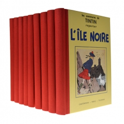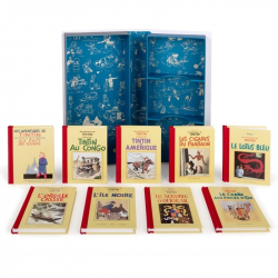 9 mini facsimiles of the first 9 Tintin albums in black and white, grouped in an elegant support. An exceptional object in unexpected format.