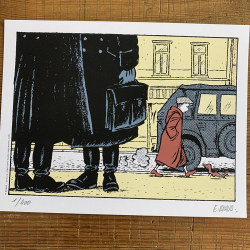Luxury B&W print of the Spirou album by Émile Bravo: Spirou ou L'espoir malgré tout, un peu plus loin vers l’horreur. Deluxe print edited by Black & White Editions. Hardcover. Limited edition and numbered 400 copies, hand signed by Émile Bravo.