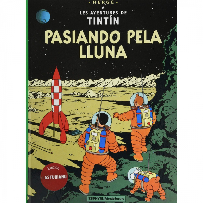 Explorers on the Moon (French: On a marché sur la Lune) is the seventeenth volume of The Adventures of Tintin, the comics series by Belgian cartoonist Hergé. Les Aventures de Tintín T17 - Pasiando pela Lluna (Asturian). Zephyrum Ediciones. 64 pages.
