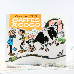 Deluxe edition of the Gaston Nº3 album: Gaffes à Gogo. Originally published in 1963, it features the album in B&W + 3 pages of supplements. 33x23cm. Delivered in a box intended to accommodate the entire collection. A must have for any Franquin fan !! Limited and numbered edition of 495 copies.