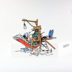 Deluxe edition of the Gaston Nº4 album: Gaffes en gros. Originally published in 1963, it features the album in B&W + 3 pages of supplements. 33x23cm. A must have for any Franquin fan !! Limited and numbered edition of 495 copies.