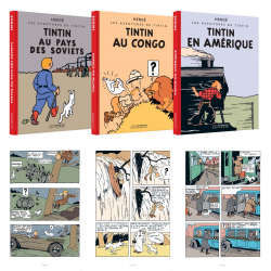 Brought together for the first time in a box set, the original versions of the first three adventures of Tintin are adorned with new colors to bring an unprecedented freshness to the drawings of young Hergé. Colorized: Tintin in America - Tintin in the Congo - Tintin in the Land of the Soviets. French language.