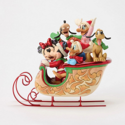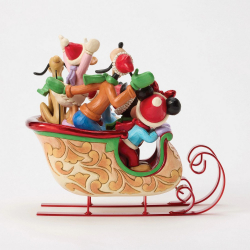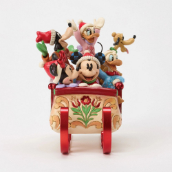 Collectible resin figurine Disney Traditions by Jim Shore Mickey: Christmas with friends. Celebrate the magic of the holidays with this beautiful Christmas sleigh where Mickey, Minnie, Donald, Daisy, Goofy and Pluto gather to bring warmth and joy to the season. Designed by award-winning artist and sculptor Jim Shore for the Disney Traditions brand. Height: 20,5cm.