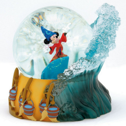 Snowball figurine Enesco Disney Showcase, Mickey Mouse: Sorcerer. Celebrate 85 years of Walt Disney's animated masterpiece with this magnificent snow globe. Mickey, as the sorcerer's apprentice, brings enchanted broomsticks and powerful waves to life, captured in clear resin, for a magical tribute to this legendary classic. Height: 15cm.