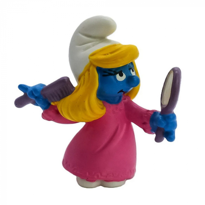 The Smurfs PVC Schleich Figure: Smurfette combing her hair. Each figure is made of high-quality plastic, meticulously detailed and hand-painted. Height: 5,5cm.
