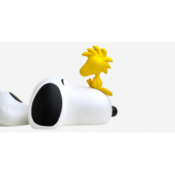 A resin version of Snoopy lying on the floor with his faithful companion Woodstock. Designed and created by our artists in our Leblon Delienne workshops in France. Their unique relationship, full of tender and funny moments, has touched generations of fans. Length: 33cm.
